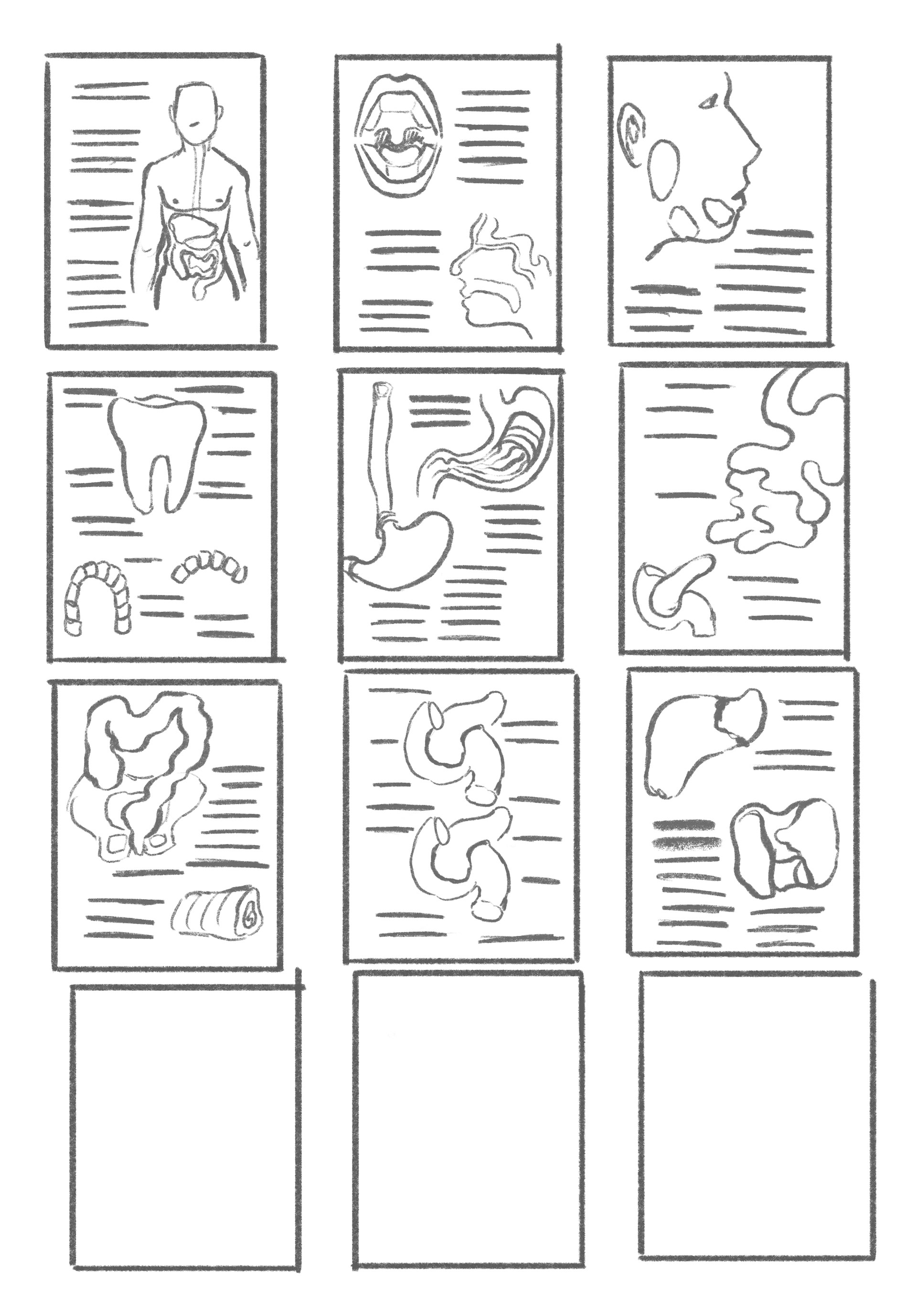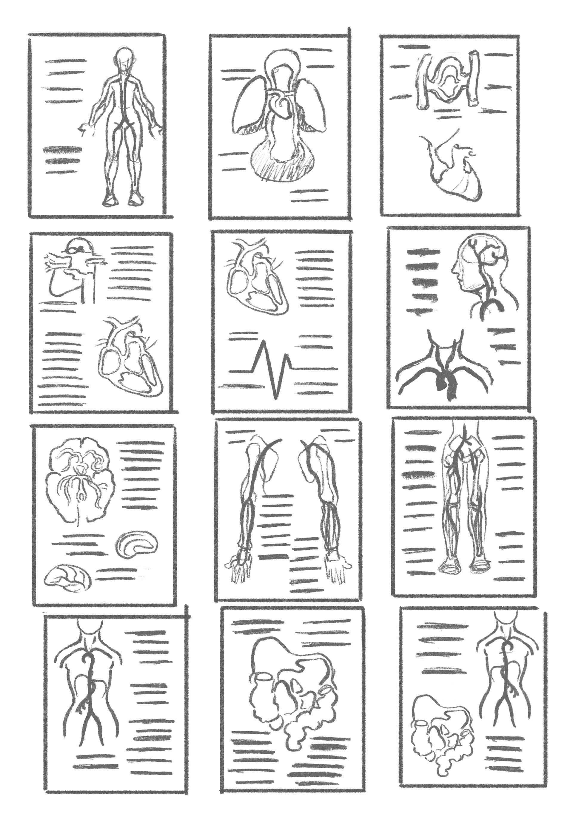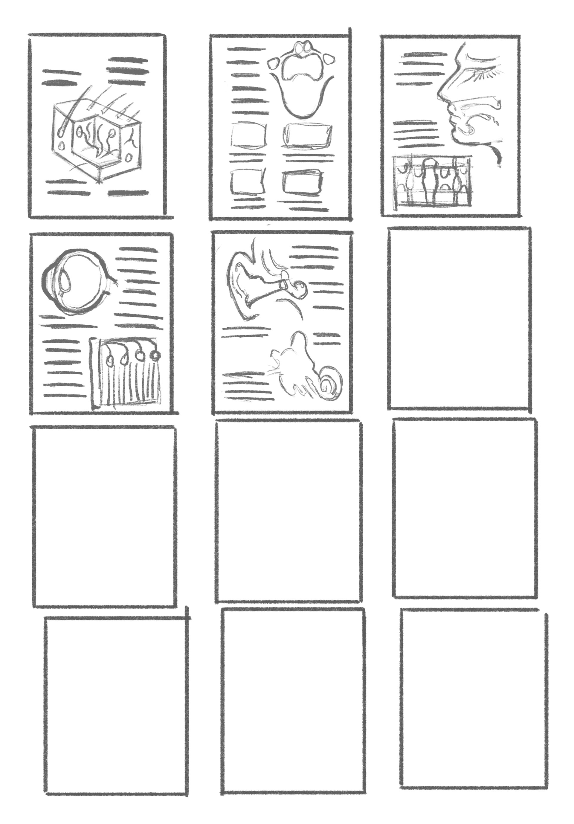 Using a provided outline from the client, I created detailed page sketches to demonstrate how each illustration and its labels would be arranged, offering a clear overview of the final book’s layout.