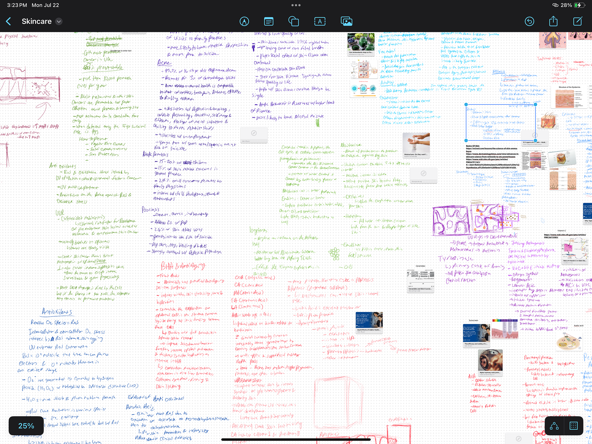 To create the animations on acne, hyperpigmentation, and aging, I began with in-depth research of scientific journals, taking detailed notes on each topic. From there, I developed a detailed animation script that broke down the processes step by step, which I then used to create storyboards outlining all planned movements and visual sequences.