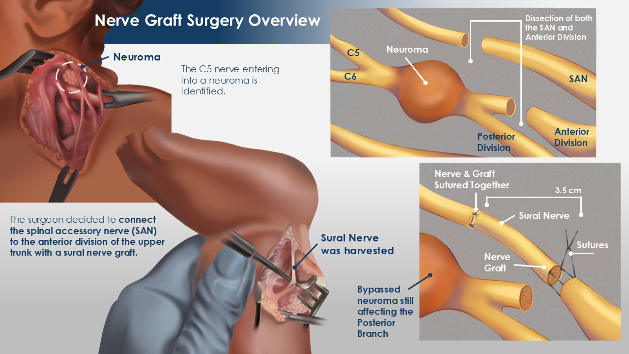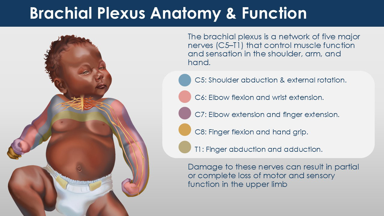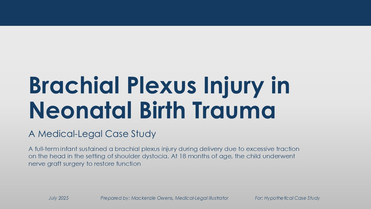 Purpose: This project involved creating a series of illustrations showing a child with brachial plexus injury symptoms, the affected spinal nerves, and possible medical interventions to reduce the risk of injury, all combined into a simple presentation for a jury.